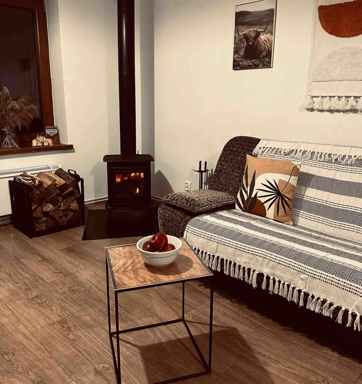 Apartament nr 1 to przestronne wnętrze przygotowane dla maksymalnie 4 osób. Jego wyjątkowym atutem jest klimatyczny kominek typu koza, który tworzy ciepłą i przytulną atmosferę sprzyjającą relaksowi