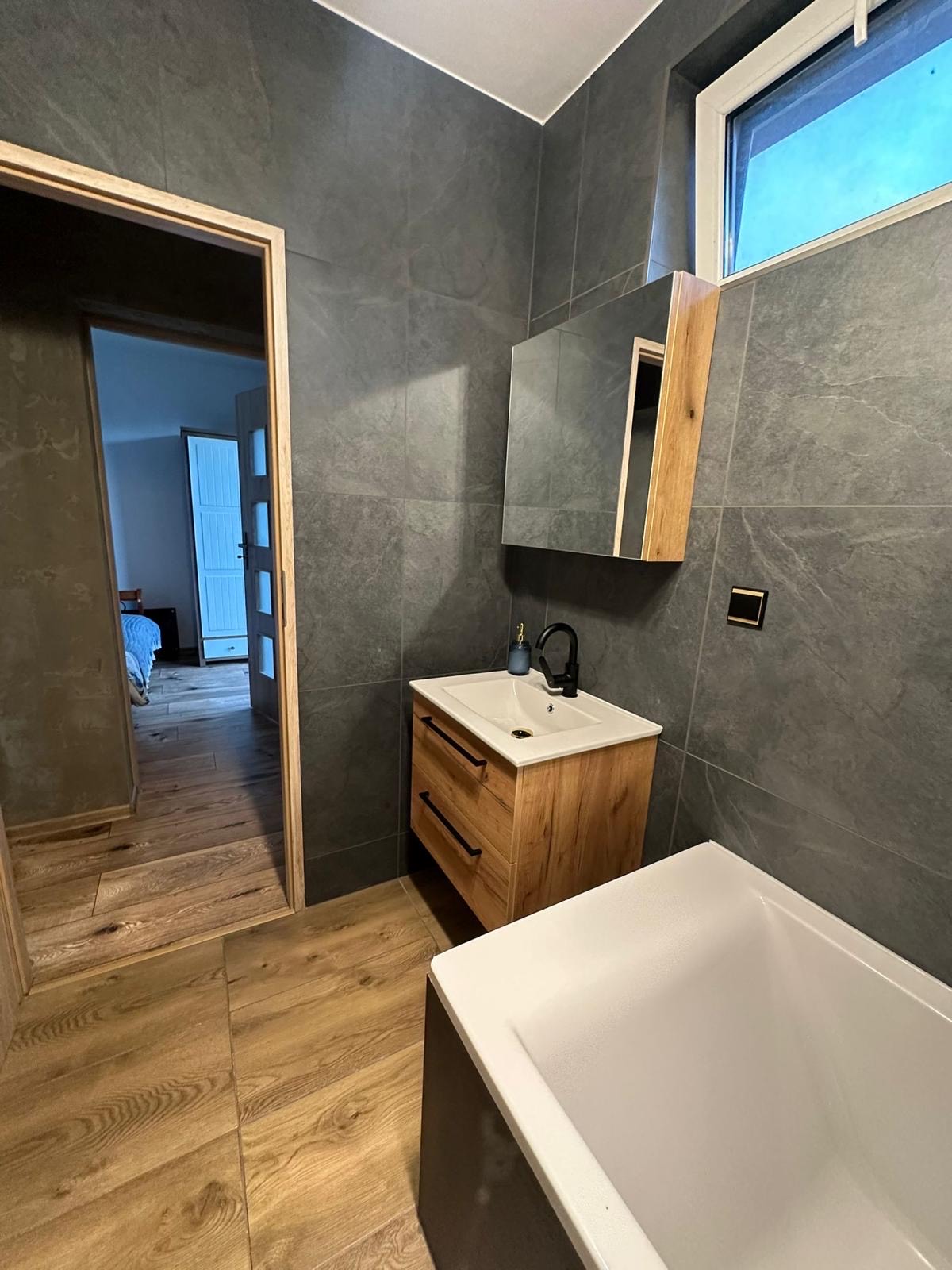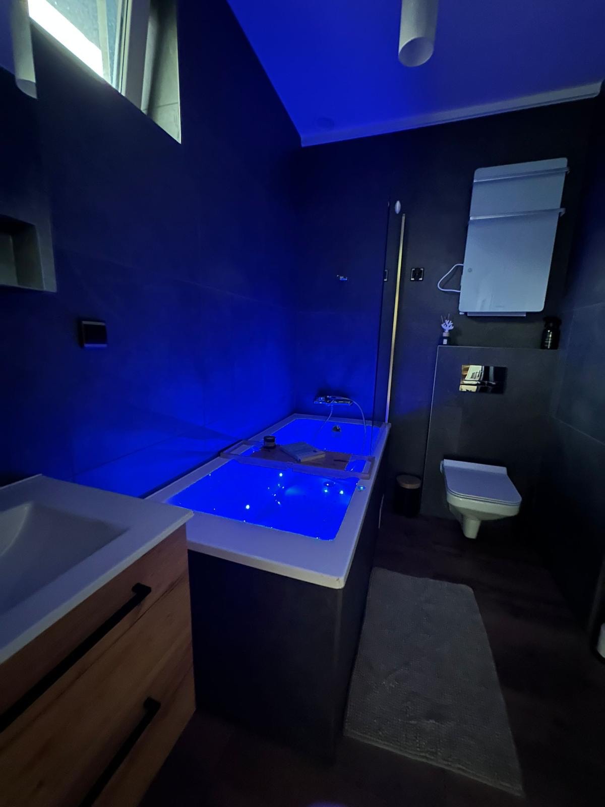 Apartament nr 2 to nowoczesna przestrzeń, stworzona z myślą o parach. Jego największym atutem jest duża wanna z hydromasażem, która zapewnia relaks i odrobinę luksusu na co dzień.